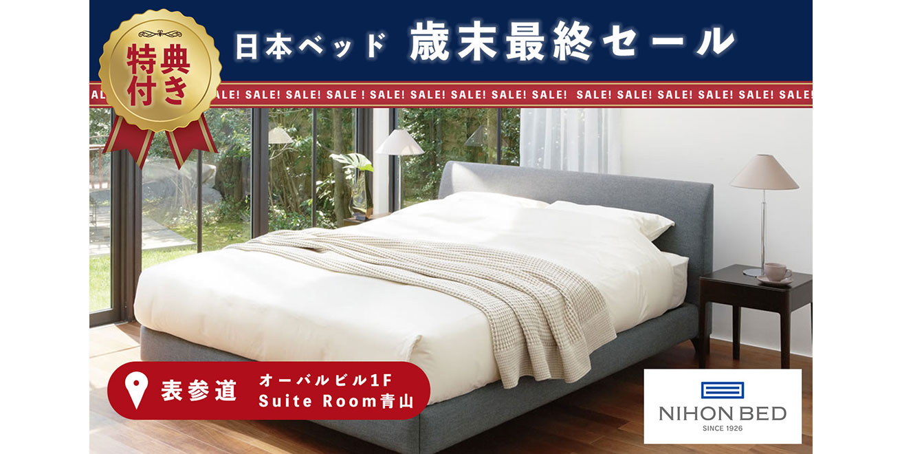 HOME   FAIR   【ご優待】SUITE ROOM 青山「日本ベッド 歳末最終セール」12/20-26※12/23・24は休業日となります