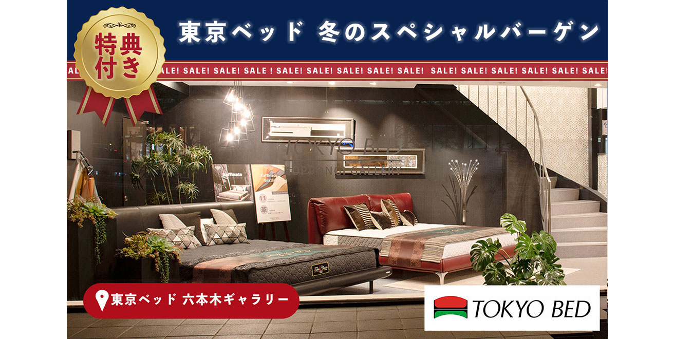 東京ベッド・六本木ギャラリーで開催される「冬のスペシャルバーゲン」では、跳ね上げ式ベッドを始め、Rev7・TOKIO・ファイテンシリーズマットレスで人気の東京ベッドを存分にお試しいただけます。また今回のセールは東京ベッドの人気商品を特別お買い得価格でご提供いたします。必ずご満足いただけるよう、お客様のお気持ちに寄り添ったご提案をさせていただきます。ぜひ会場にて東京ベッドの商品をご覧いただき、お試しくださいませ。
